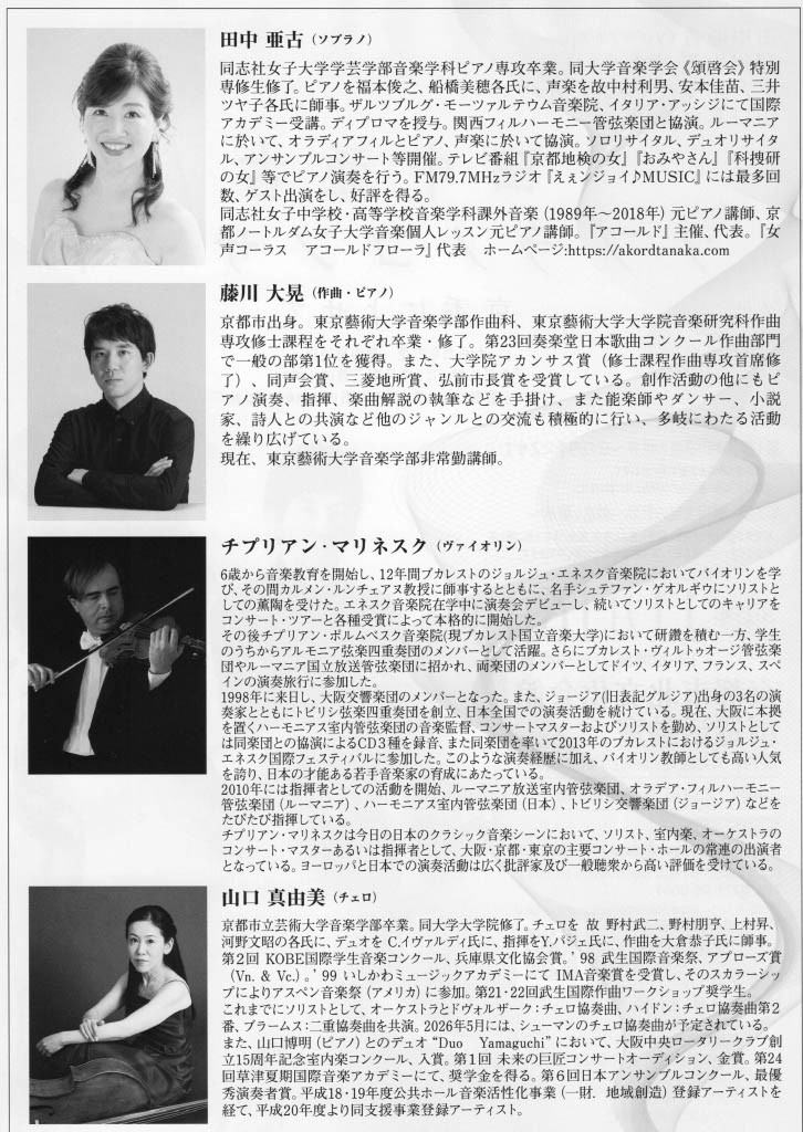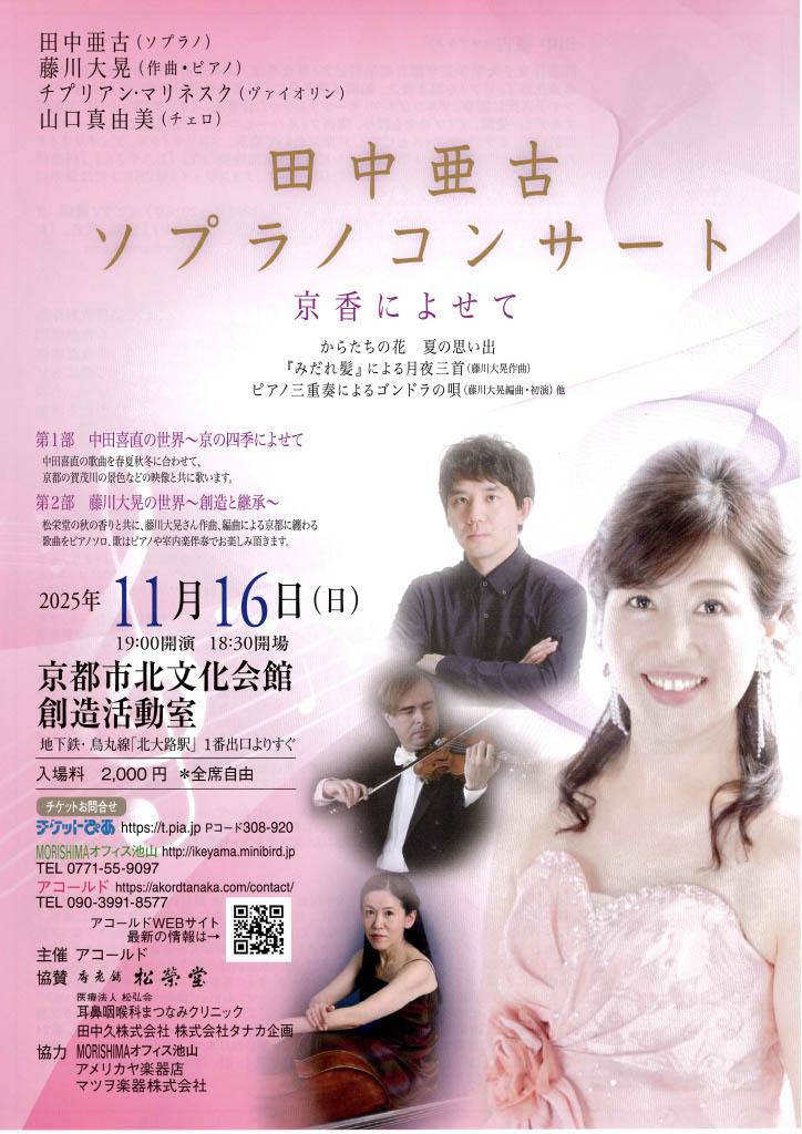 2025年11月16日(日) 田中亜古 ソプラノコンサート 京香によせて