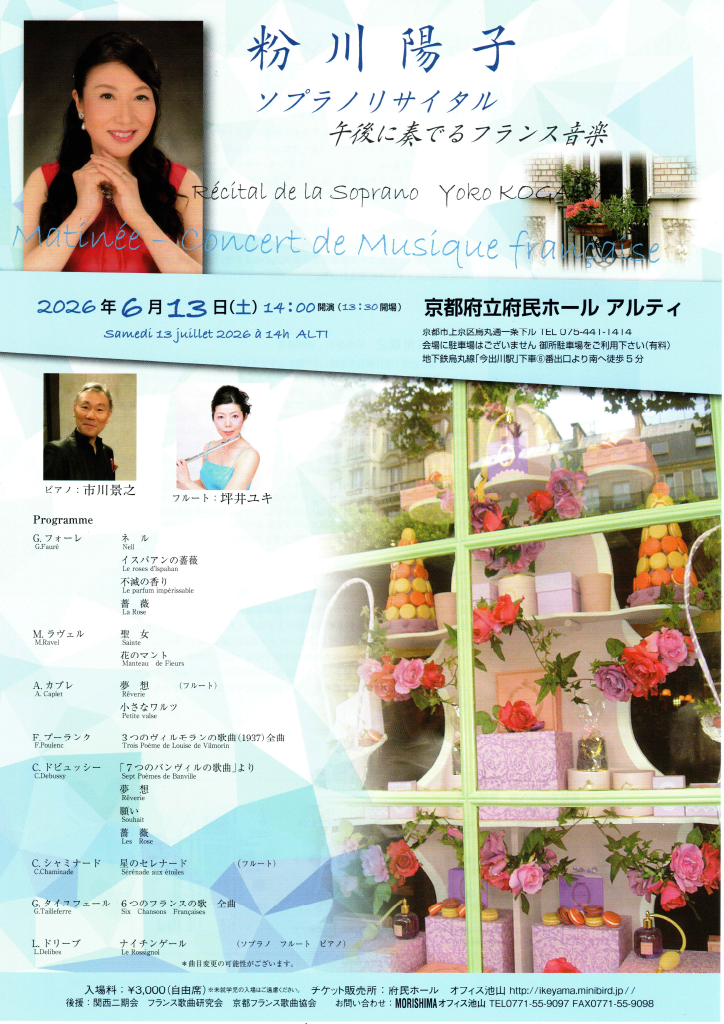 2026年6月13日(土) 粉川陽子 ソプラノリサイタル 午後に奏でるフランス音楽